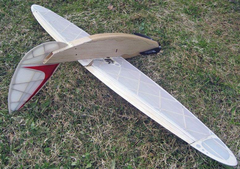 Wieder ein kleiner Nurflügel im classic Design. Wir konnten hier erneut mit neuen Holzbau-ideen ein super leichtes und sehr wendiges Modell für den anspruchsvollen "MODELLBAUER" realisieren. Durch die geodätische Bauweise in Verbindung mit präzise gefertigen Laserbauteilen lässt sich in kürzester Zeit ein sehr ansprechender Rohbau erstellen, der eigentlich zu schade ist zum bespannen. Mit einem 80W Aussenläufer und 1500er 3Zeller steht mehr als ausreichend Steigleistung zur Verfügung. Aufgrund der genauen Auslegung aller Hebel und Winkel wurde auch hier wieder ein komplett neutrales Verhalten von Kraft- zu Gleitflug erreicht. Das Modell ist auch bestens für den Hangeinsatz geeignet.
